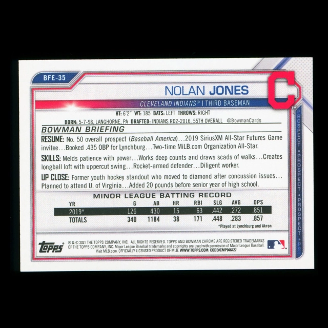Nolan Jones 2021 Bowman Prospect 1st Edition Indians