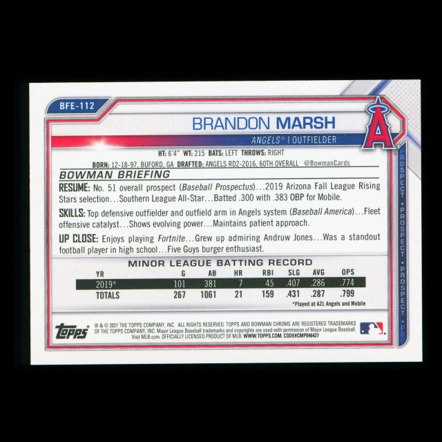 Brandon Marsh 2021 Bowman Prospect 1st Edition Angels