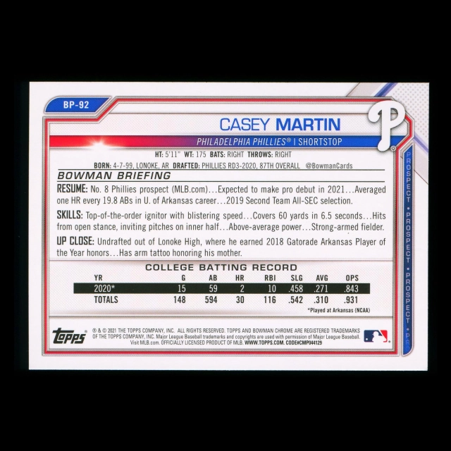 Casey Martin 2021 Bowman Prospect Phillies