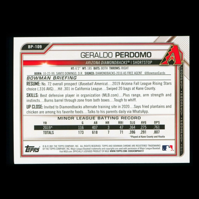 Geraldo Perdomo 2021 Bowman Prospect Diamondbacks
