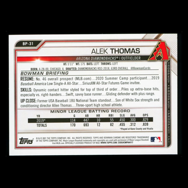 Alek Thomas 2021 Bowman Prospect Diamondbacks