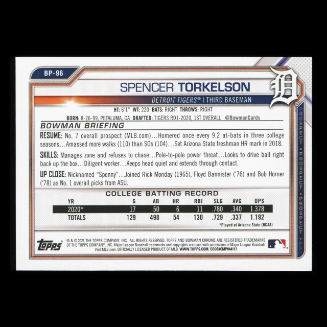 Spencer Torkelson 2021 Bowman Prospect Tigers
