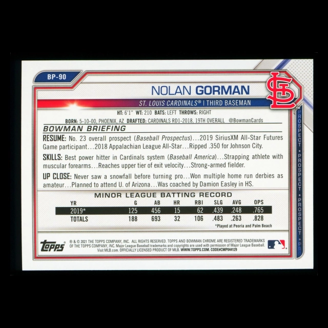 Nolan Gorman 2021 Bowman Prospect Cardinals