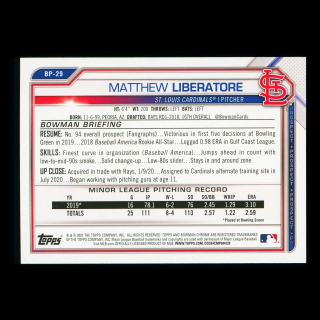 Matthew Liberatore 2021 Bowman Prospect Cardinals