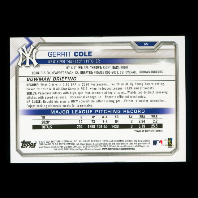 Gerrit Cole 2021 Bowman Yankees