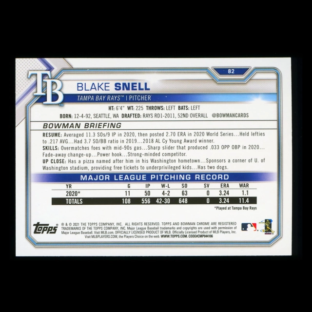 Blake Snell 2021 Bowman Rays
