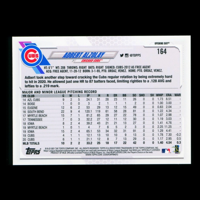 Adbert Alzolay 2021 Topps Opening Day Future Stars Cubs