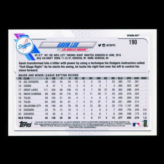 Gavin Lux 2021 Topps Opening Day Future Stars Dodgers