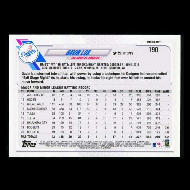 Gavin Lux 2021 Topps Opening Day Future Stars Dodgers