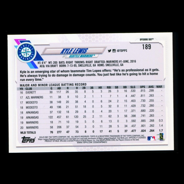 Kyle Lewis 2021 Topps Opening Day All-Star Rookie Mariners