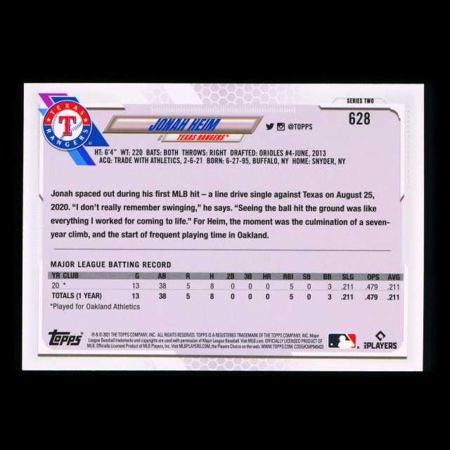 Jonah Heim RC Topps 2021 Rookie Rangers