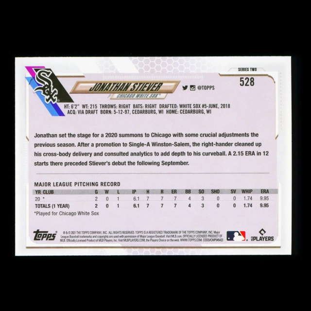Jonathan Stiever RC Topps 2021 Rookie White Sox