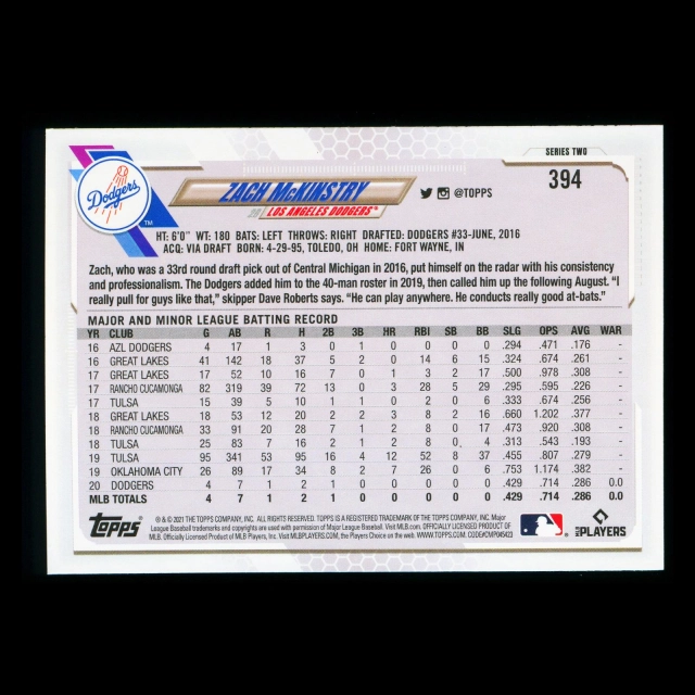 Zack McKinstry RC Topps 2021 Rookie Dodgers