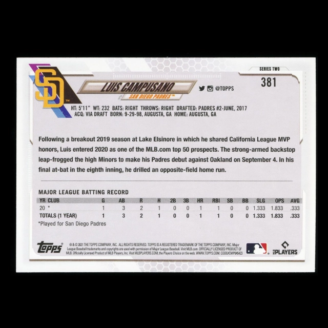 Luis Campusano RC Topps 2021 Rookie Padres