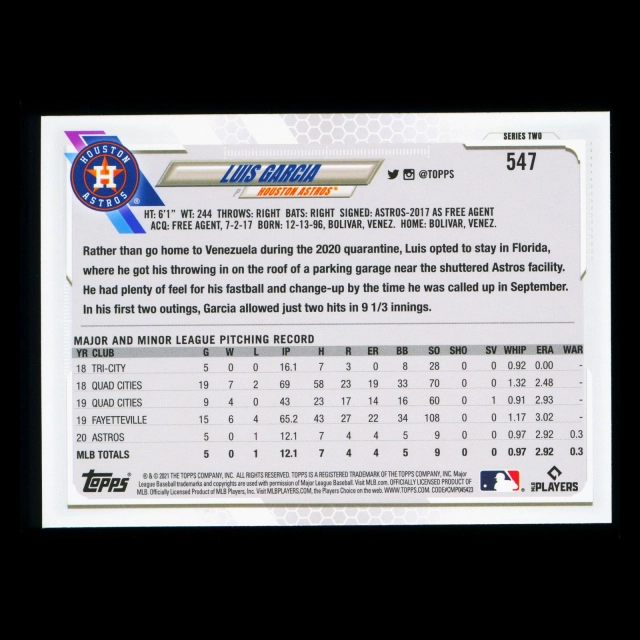 Luis Garcia RC Topps 2021 Rookie Astros