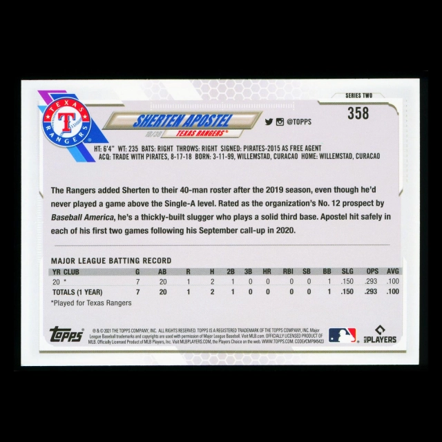 Sherten Apostel RC Topps 2021 Rookie Rangers