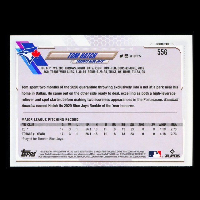 Tom Hatch RC Topps 2021 Rookie Blue Jays