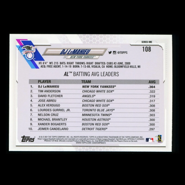 DJ LeMahieu 2021 Topps League Leaders Yankees