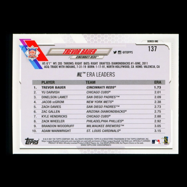 Trevor Bauer 2021 Topps League Leaders Reds
