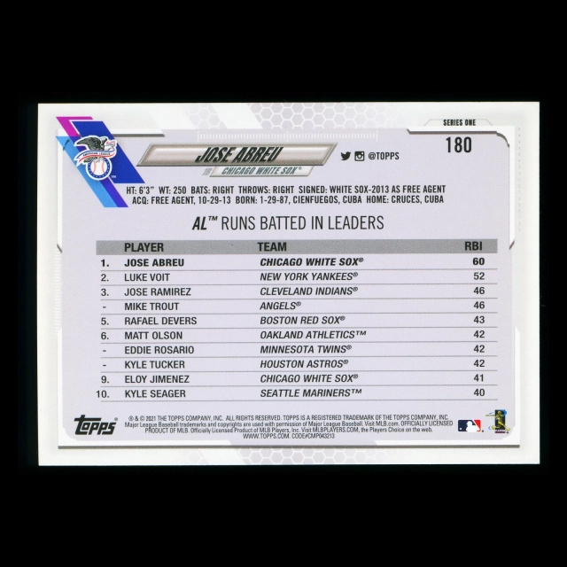 Jose Abreu 2021 Topps League Leaders White Sox