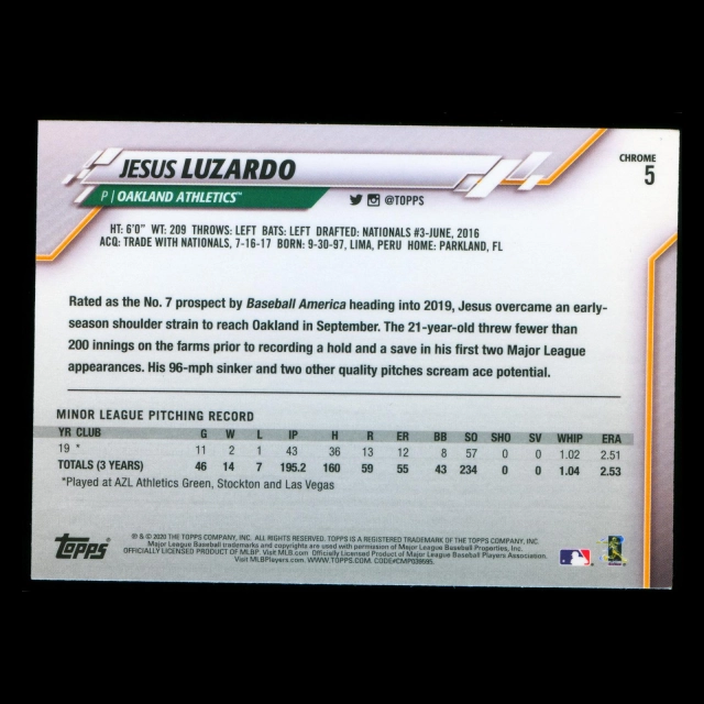 Jesus Luzardo RC 2020 Topps Chrome Rookie Athletics