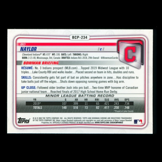 Bo Naylor 2020 Bowman Chrome Prospect Indians