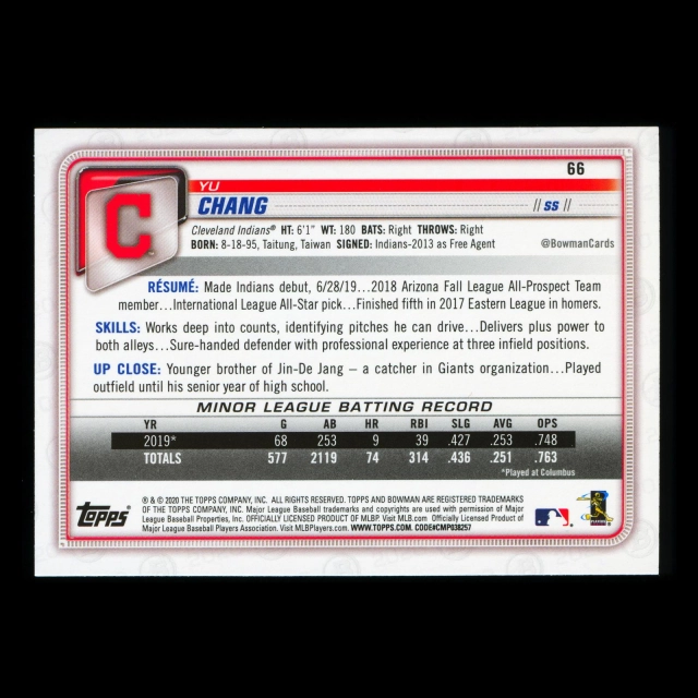 Yu Chang RC 2020 Bowman Rookie Indians