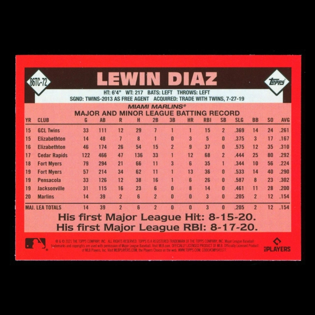 Lewin Diaz RC 2021 Topps Chrome 1986 Retro Rookie Marlins