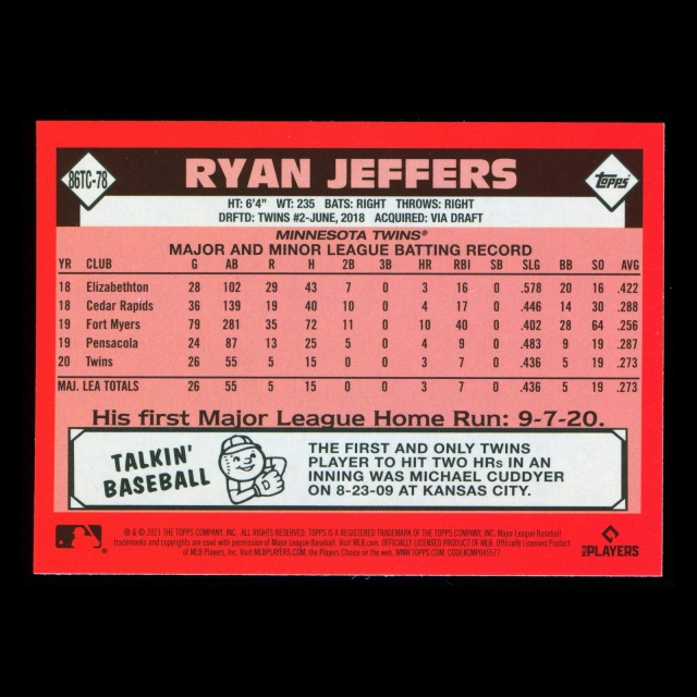 Ryan Jeffers RC 2021 Topps Chrome 1986 Retro Rookie Twins