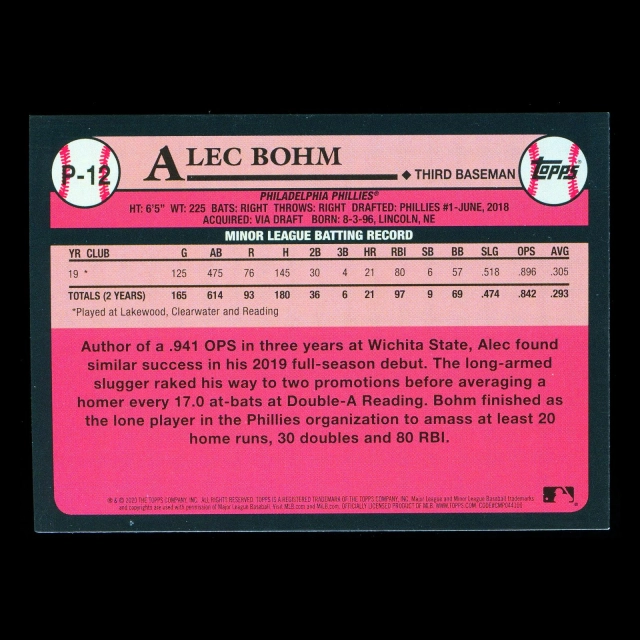 Alec Bohm 2020 Topps 1989 Retro #1 Prospect Phillies