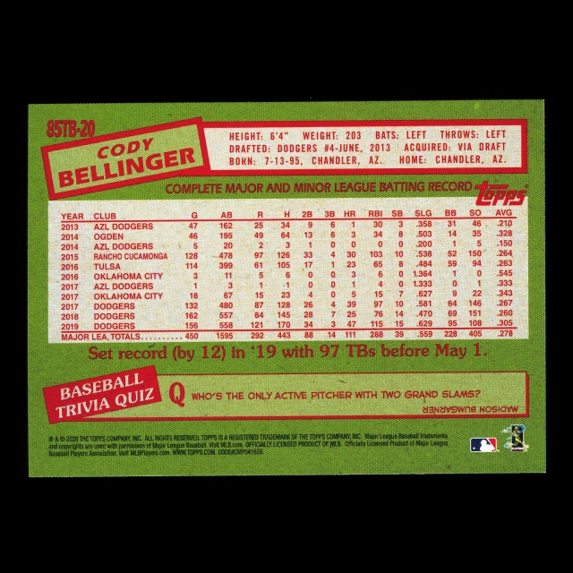 Cody Bellinger 2020 Topps 1985 Retro Dodgers
