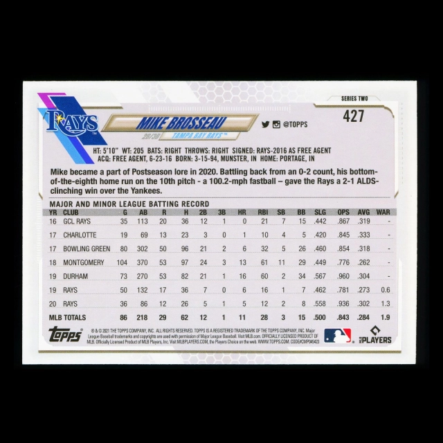 Mike Brosseau Topps 2021 Future Stars Rays