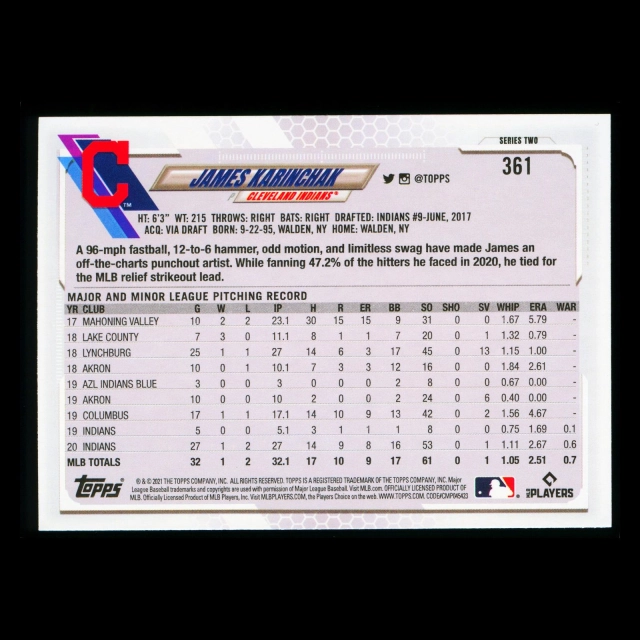 James Karinchak 2021 Topps Opening Day Future Stars Indians