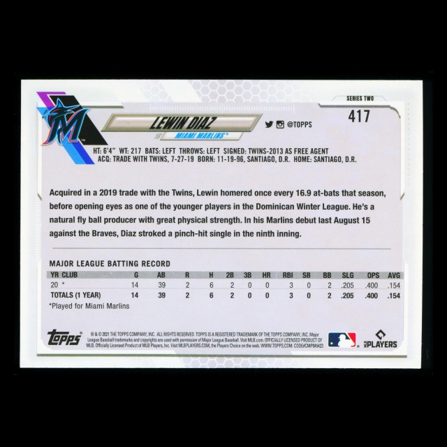 Lewin Diaz RC Topps 2021 Rookie Marlins