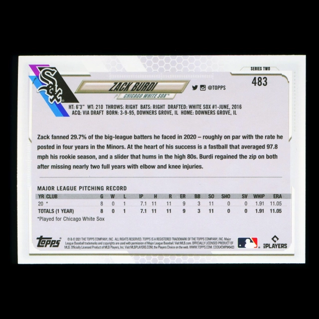 Zack Burdi RC Topps 2021 Rookie White Sox