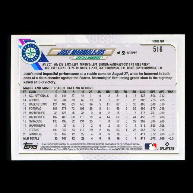 Jose Marmolejos RC Topps 2021 Rookie Mariners