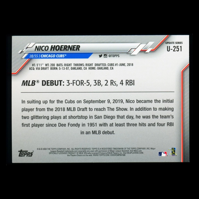 Nico Hoerner RC 2020 Topps Rookie Cubs