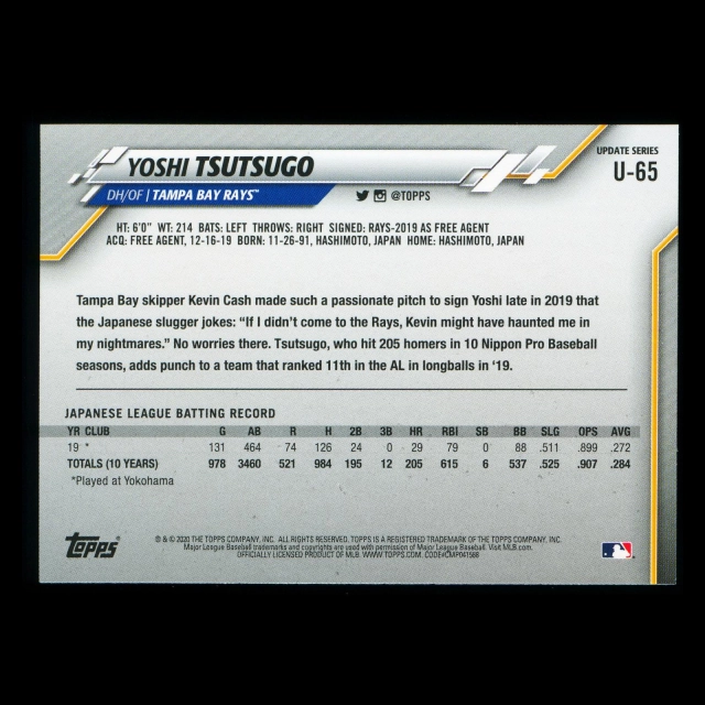 Yoshi Tsutsugo RC 2020 Topps Rookie Rays