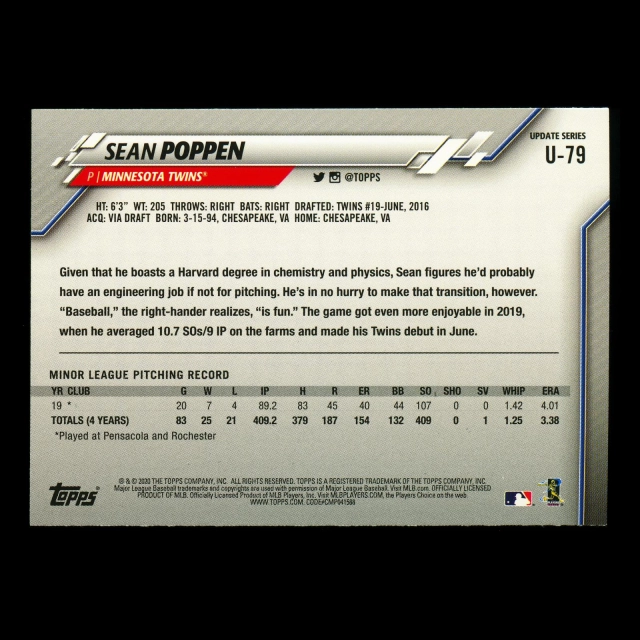 Sean Poppen RC 2020 Topps Rookie Twins
