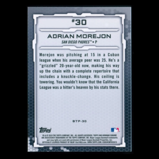 Adrian Morejon 2019 Bowman Chrome Top 100 #30 Padres