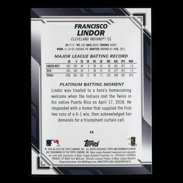Francisco Lindor 2019 Bowman Platinum Indians