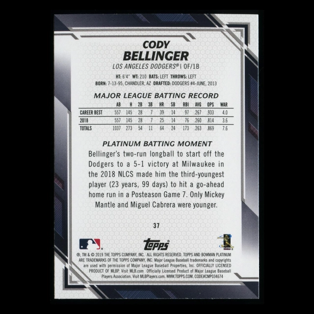 Cody Bellinger 2019 Bowman Platinum Dodgers