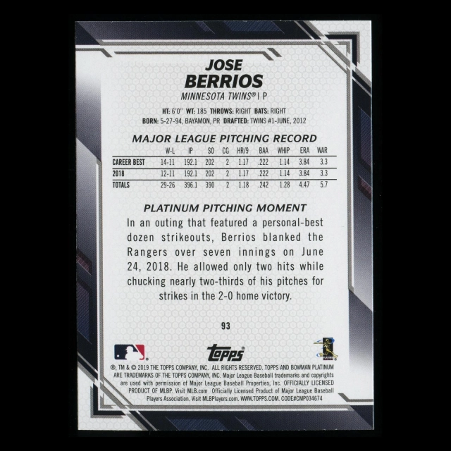 Joe Berrios 2019 Bowman Platinum Twins