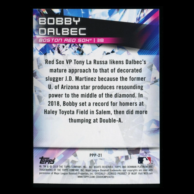 Bobby Dalbec 2019 Bowman Platinum Prismatic Prodigies Red Sox