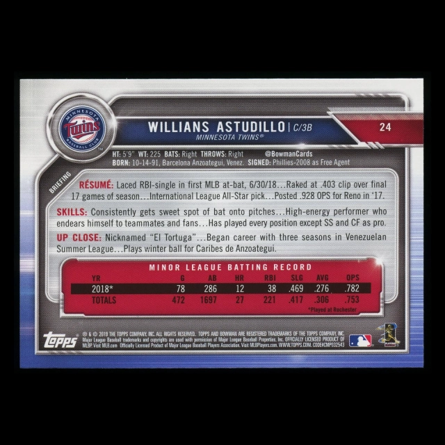 Willians Astudillo RC 2019 Bowman Rookie Twins