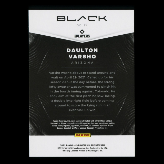 Daulton Varsho RC 2021 Black Rookie Diamondbacks