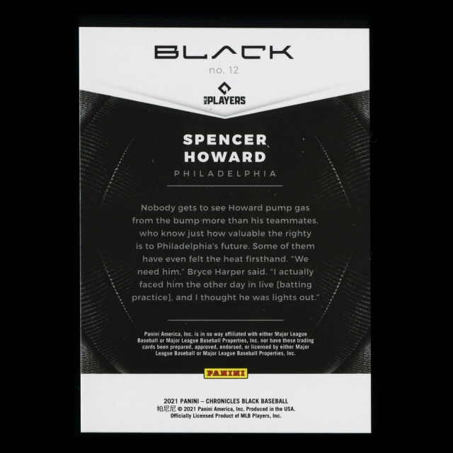 Spencer Howard RC 2021 Black Rookie Phillies