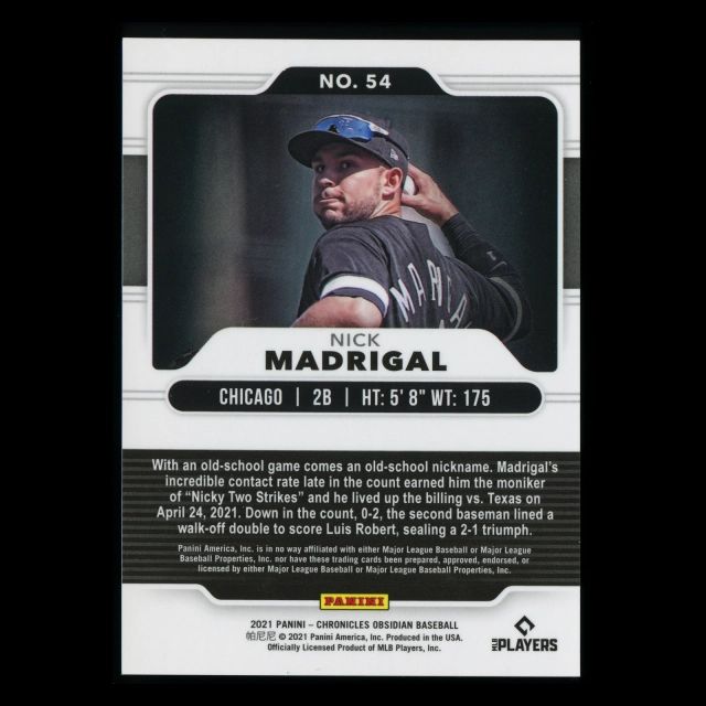 Nick Madrigal RC 2021 Obsidian Rookie White Sox