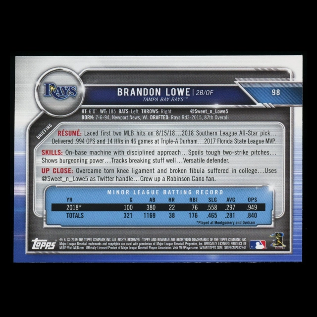 Brandon Lowe RC 2019 Bowman Rookie Rays