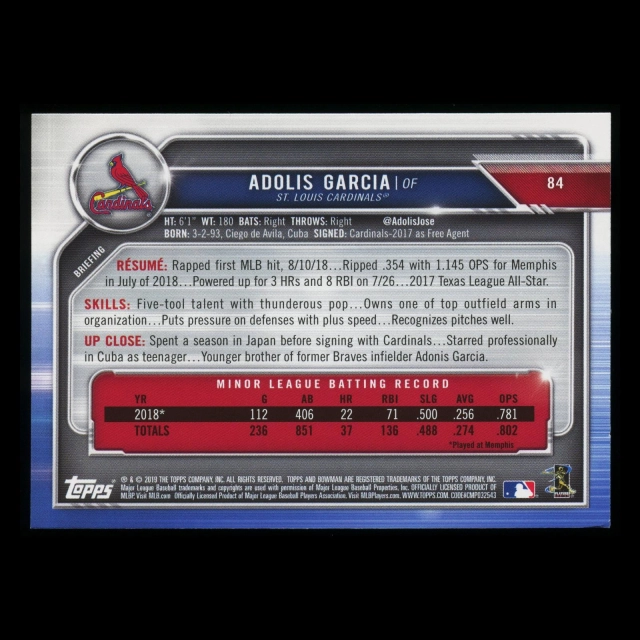 Adolis Garcia RC 2019 Bowman Rookie Cardinals